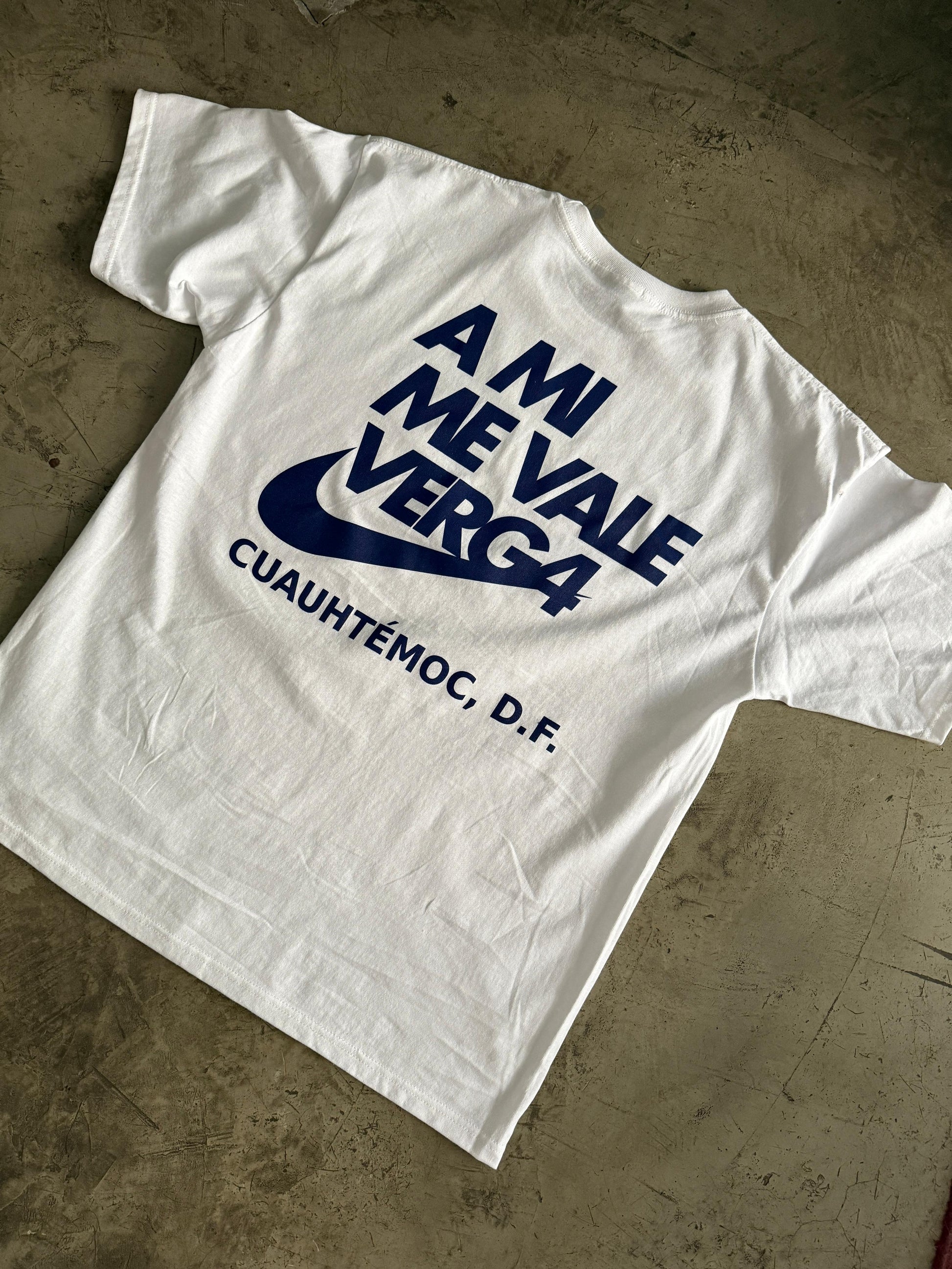 Playera "A Mi Me Vale Verga" Blanca / Azul